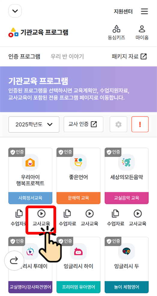 또는 프로그램 내> 교사교육 메뉴를 클릭하세요.
