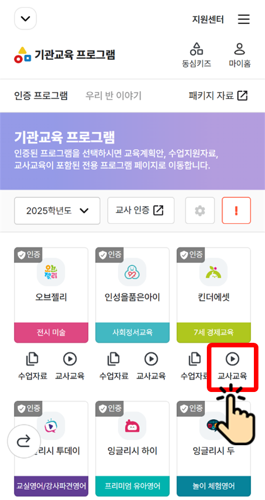 또는 프로그램 내> 교사교육 메뉴를 클릭하세요.