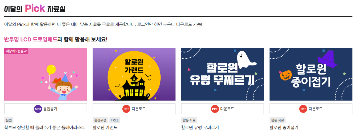 10월 추천 활동자료를 회원 로그인 후 무료로 다운로드하실 수 있습니다.(활용 자료는 각 Pick 페이지에서 확인 가능)