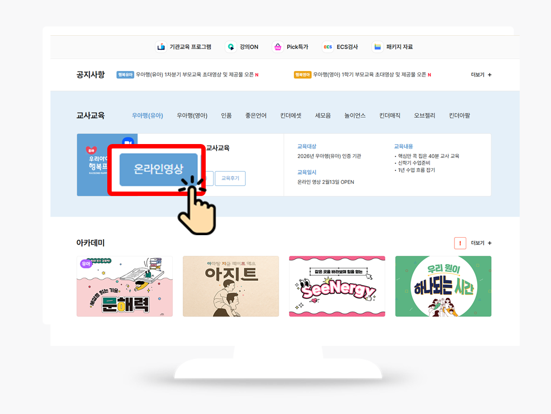 2. 교사교육 - 프로그램의 온라인 영상 클릭!