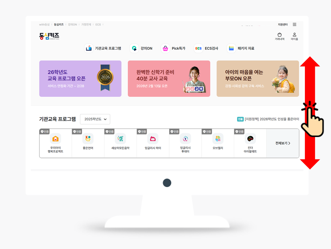 1. 동심키즈 (teacher.mydongsim.com) 하단으로 스크롤 이동