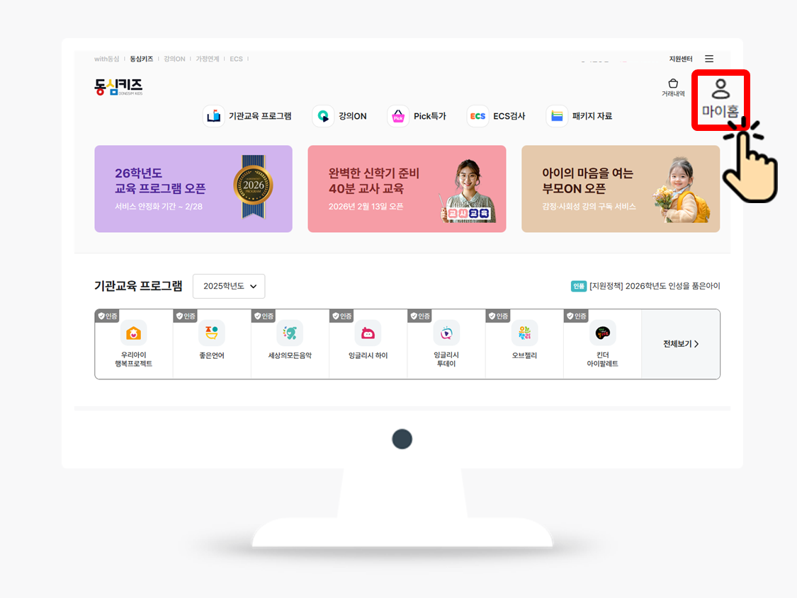 2. 동심키즈> 마이홈 > 지원서비스 클릭