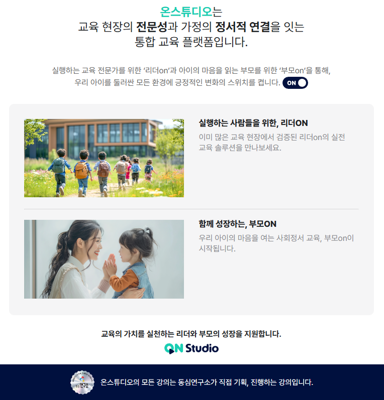 강의ON은 동심연구소가 개발하고 (주)동심이 운영하는 ON스튜디오입니다.