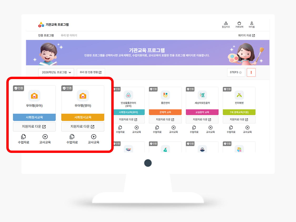 인증된 우아행(유아), 우아행(영아) 프로그램을 클릭하여 이동합니다.